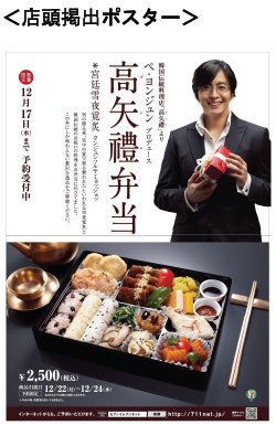 【東京20日聯合】俳優ペ・ヨンジュンさんが日本でクリスマスシーズンに合わせ、 韓国伝統料理の弁当を販売する。弁当販売はこれが第2弾。