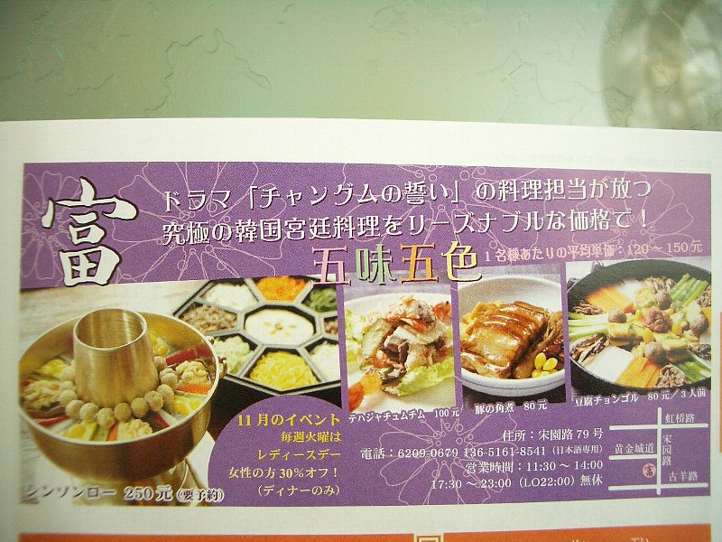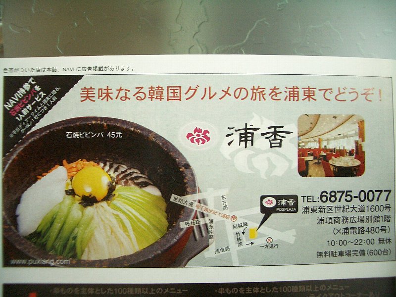 上海の日本人向け雑誌に載っている韓国料理屋の広告です。